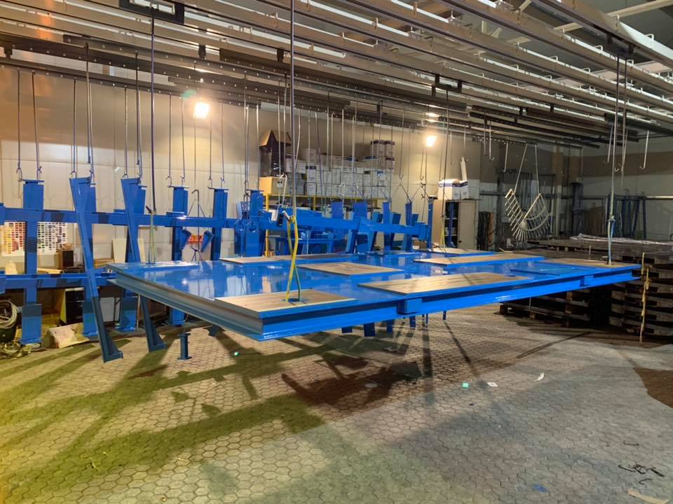 Dispone di due stabilimenti collegati tra loro di 850 mq cadauno, e di un piazzale di 2000 mq destinato allo stoccaggio e alla movimentazione. All’interno di essi sono installati : 1 impianto statico per pezzi di grosse dimensioni, con forno e cabina di dimensioni di passaggio L.2.60 x H.3.00 x P. 12.00 ed un secondo impianto automatico a catena con passaggi L.1.2 x H. 1.6 e rotazione massima di 2.5 mt